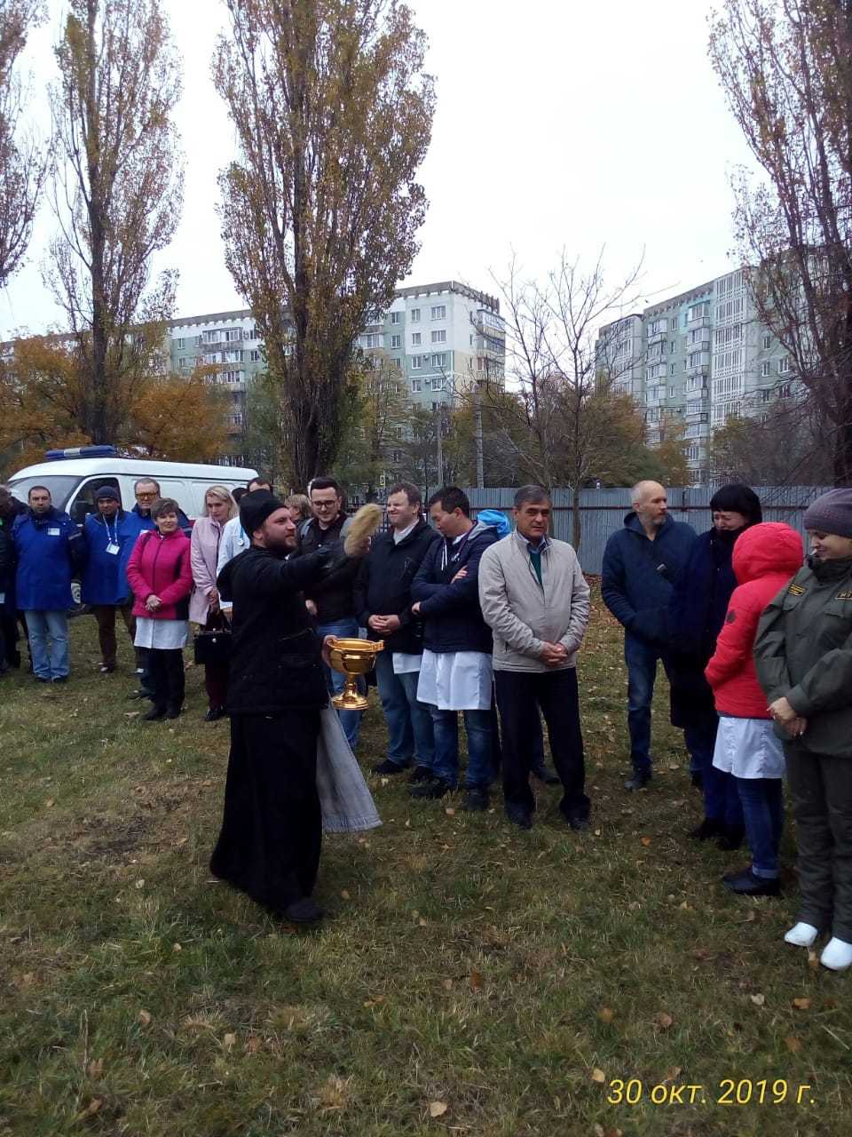 По благословению настоятеля храма св. Великомученика и Целителя Пантелеимона митрофорного протоиерея Павла Самойленко, перед началом учений клирик храма иерей Игнатий Переходченко совершил молебное пение о призывании помощи Святаго Духа перед началом всякого дела, выступил с напутственным словом и окропил всех участников учений, палатки с медоборудованием и машины скорой помощи святой водой.